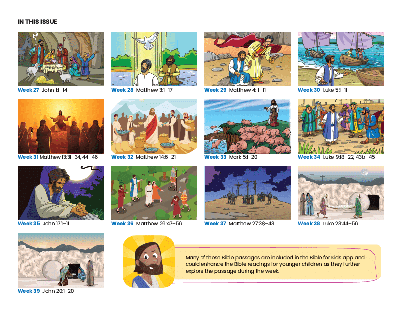 For an overview of the whole Bible and the big story of God, start with Issue 1 of Year 1 and then continue with Issue 2, this Issue 3, & then Issue 4 of Year 1. This resource is not dated so families can start any time during the year.