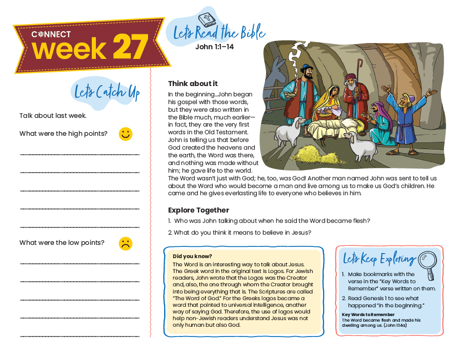 Each 13-week issue of CONNECT is designed for families, with a special focus on elementary school-aged children.