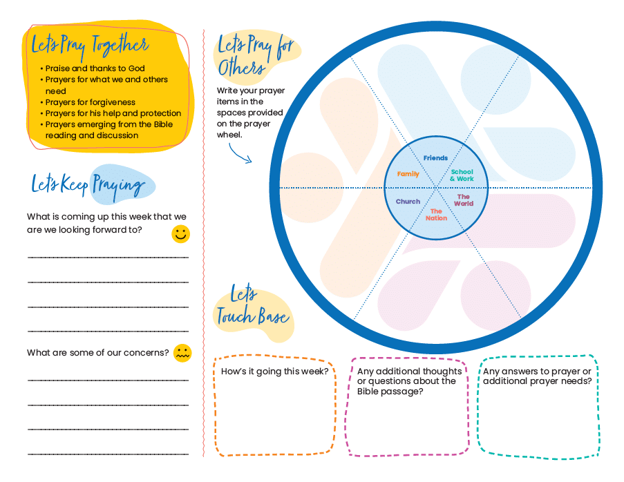 - Pray together using a helpful guide for key areas of focus.