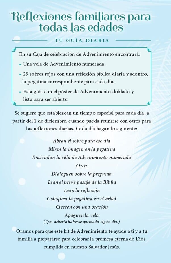Celebrate Advent with God’s Promise Kept. This Spanish version Advent kit provides children and families a memorable way to celebrate Advent as you prepare for the birth of Jesus. Point the whole family to Jesus with daily Scripture readings and Bible reflections. This kit takes you from Genesis through the birth of our Savior with 25 Scripture passages and daily reflections.