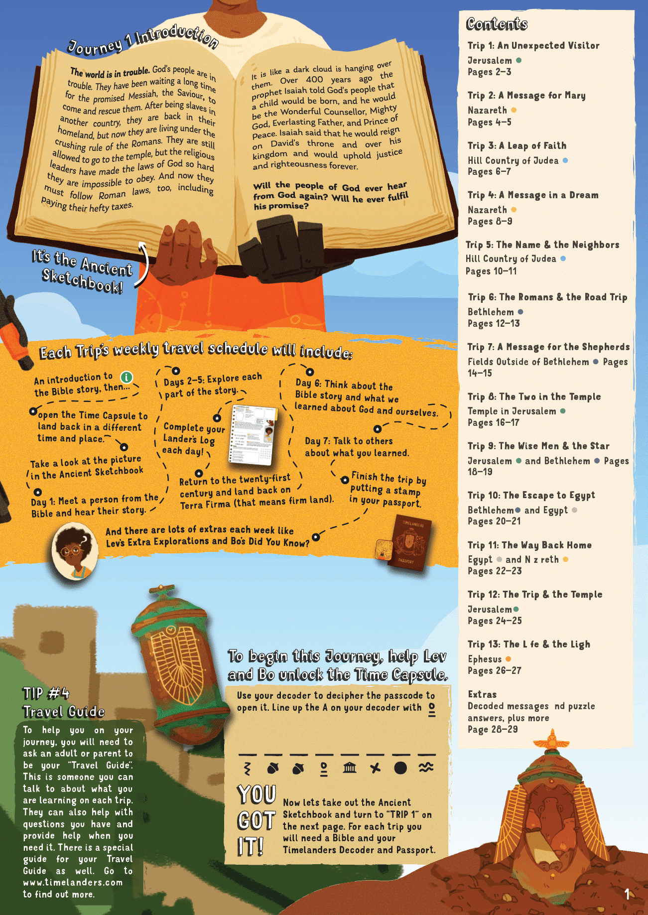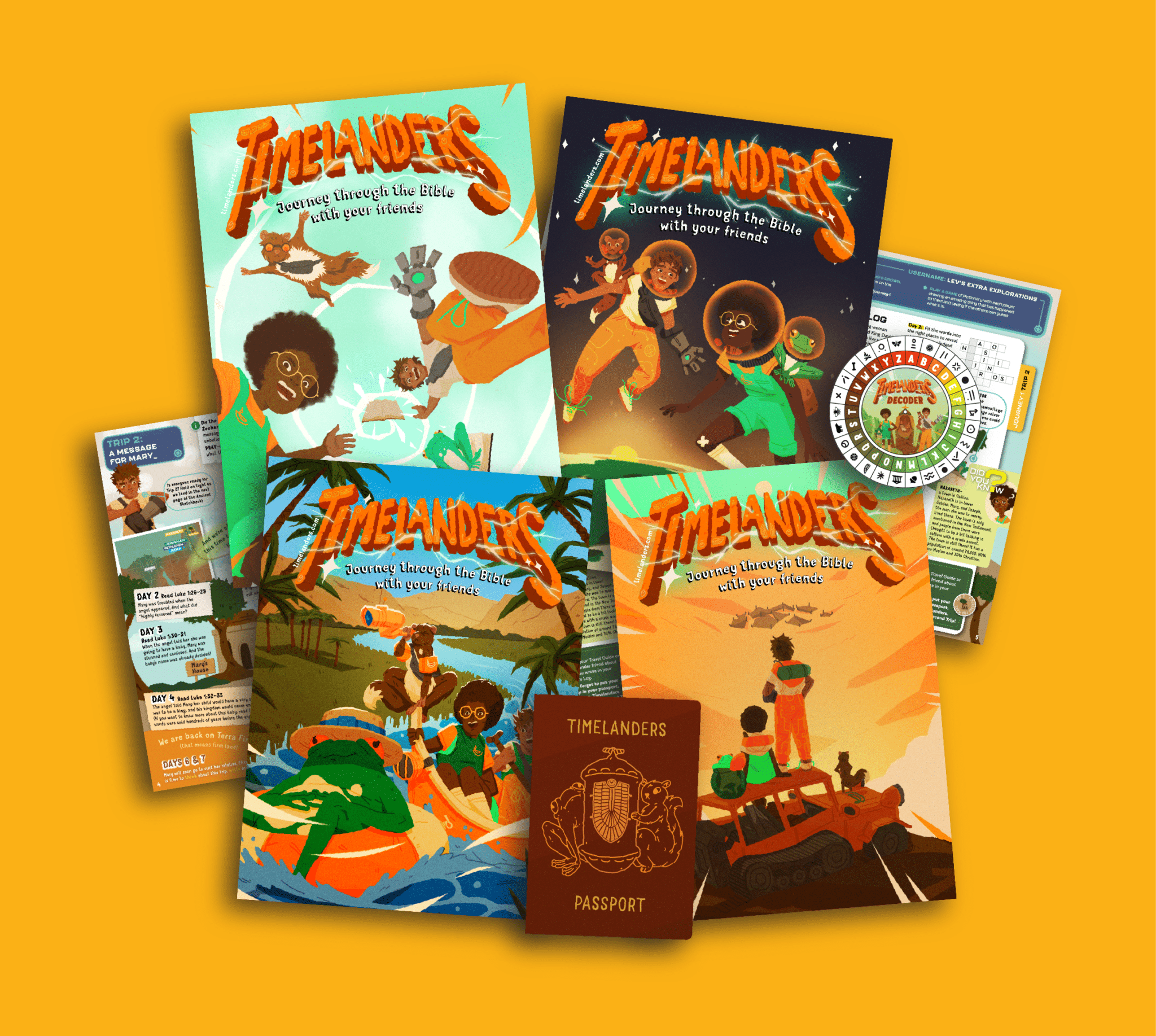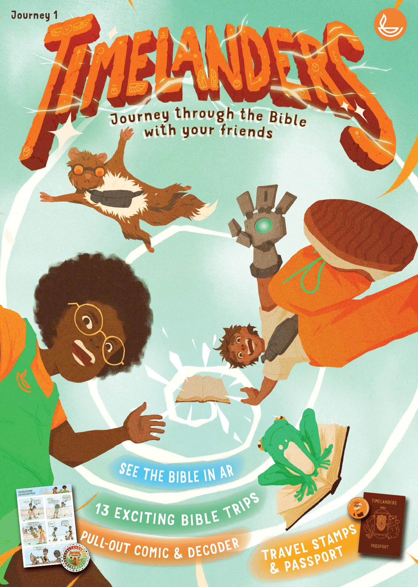In TIMELANDERS Year 1, children join Lev, Bo and Ozzy as they begin to explore places in the Bible. With their first quarterly issue, readers will also receive a passport and a decoder to use as they travel.